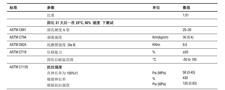 ASTM C-920 S 类,NS 型,50级,适用于NT, M, G, A, 类应用