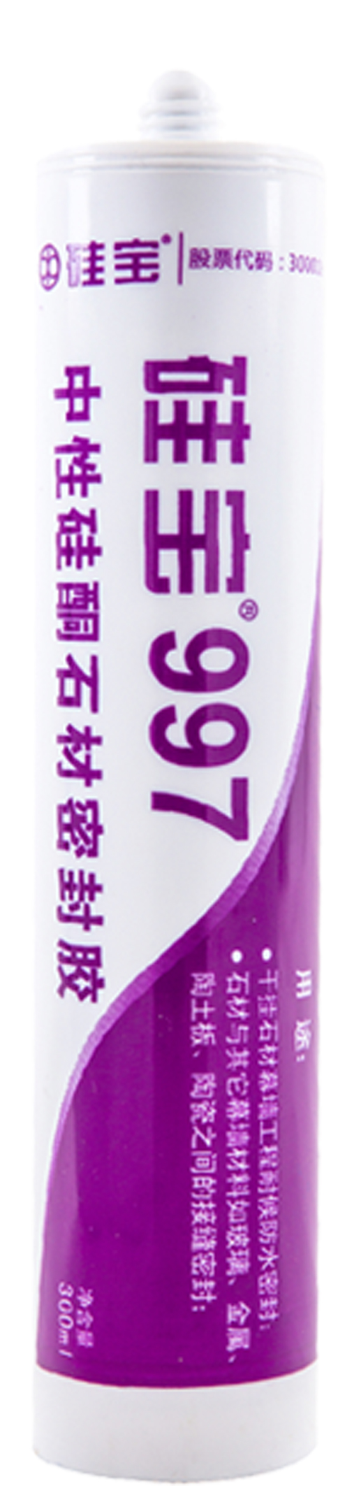 硅宝 997 中性硅酮石材密封胶产品特性:硅宝 997 中性硅酮石材密封胶 产品特性: 单组分,中性固化; 对大理石、花岗石等建筑材料具有 优异的粘结性并且无污染; 良好的弹性、伸长率; 优异的耐气候老化性能及耐高低温性能。